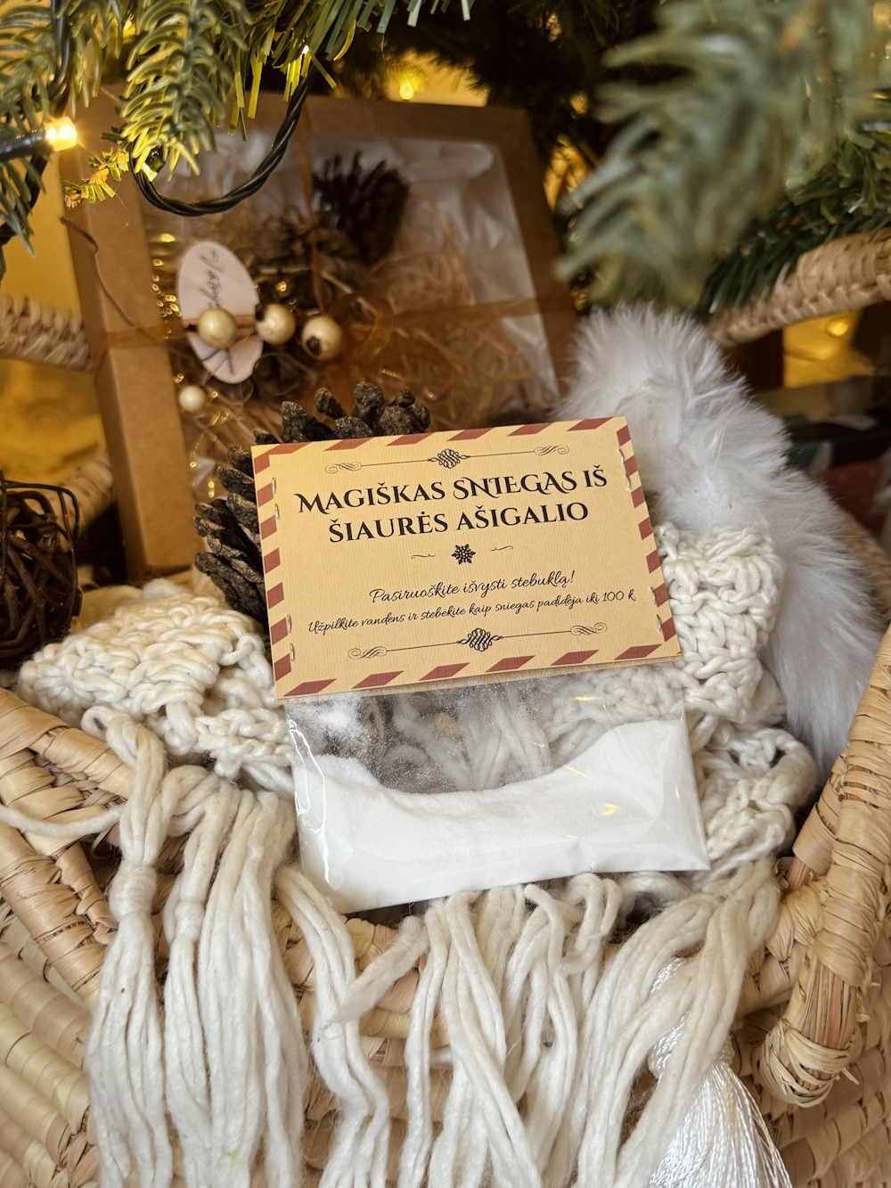 DĖŽUTĖ. Šis magiškas rinkinys supakuotas gražioje dėžutė su Kalėdų Senelio Pašto ženklinimu.