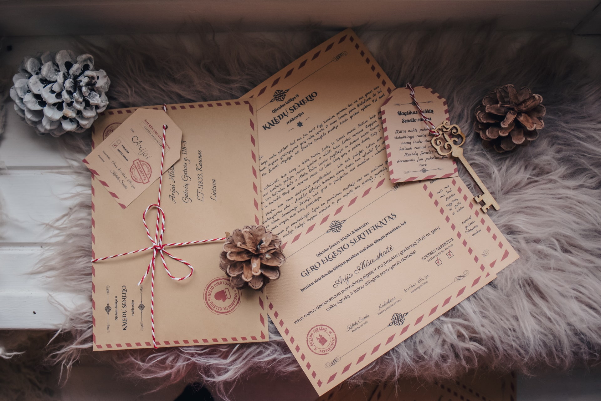 AUTENTIŠKI PARAŠAI. Mūsų siunčiamus laiškus ir sertifikatus pasirašo pats Kalėdų Senelis, ponia Kalėdienė ir Elfų atstovai.