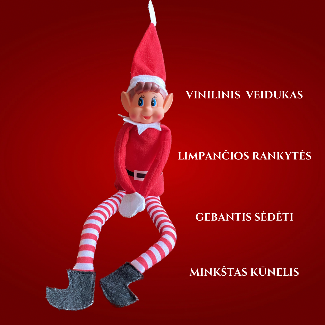 Elfas turi vinilinė veidelį, geba sėdėti.